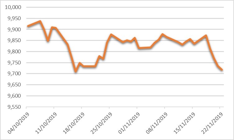 | Price (€): 22.11.2019 | Price (€): 15.11.2019 | Weekly Change (%) | Year-to-date Change (%) | |