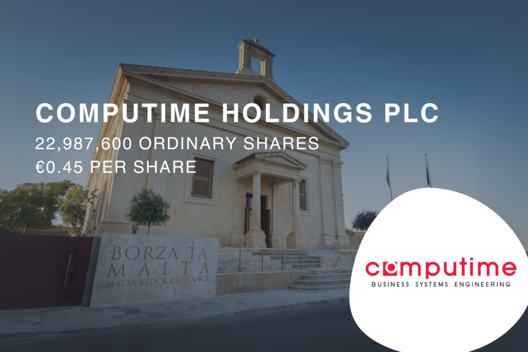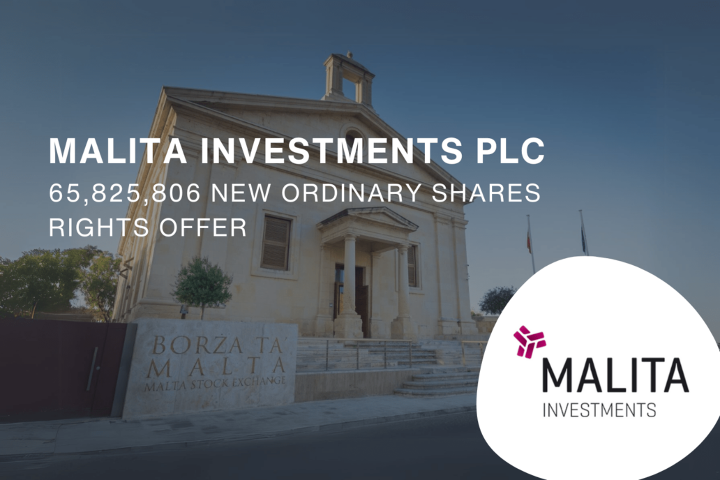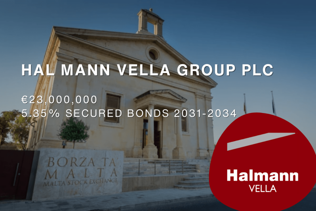 Product News January 31, 2025Malta Government Stocks – February 2025 IssueRead More Product News November 7, 2024Computime Holdings plc – Share OfferRead More Product News October 14, 2024Bank of Valletta plc – €100m 5% Unsecured Subordinated Bonds 2029-2034Read More Product News October 3, 2024Malta Government Stocks – October 2024 Issue – PricingRead More Product News September 27, 2024Agora Estates plc – €9m 5.5% Secured Bonds 2036Read More Product News September 27, 2024Malta Government Stocks – October 2024 IssueRead More Product News September 16, 2024Tigné Mall plc – Conditional Voluntary Public Takeover Offer by Marsamxett Properties LtdRead More Product News July 25, 2024Malta Government Stocks – July 2024 Issue – PricingRead More Product News July 18, 2024Malta Government Stocks – July 2024 IssueRead More Product News July 7, 2024Hal Mann Vella Group plc – €23m 5.35% Secured Bonds 2031-2034Read More Product News June 5, 2024Hili Finance Company plc – €80m 5% Unsecured Bonds 2029Read More Product News March 8, 2024Malita Investments plc – New Rights IssueRead More